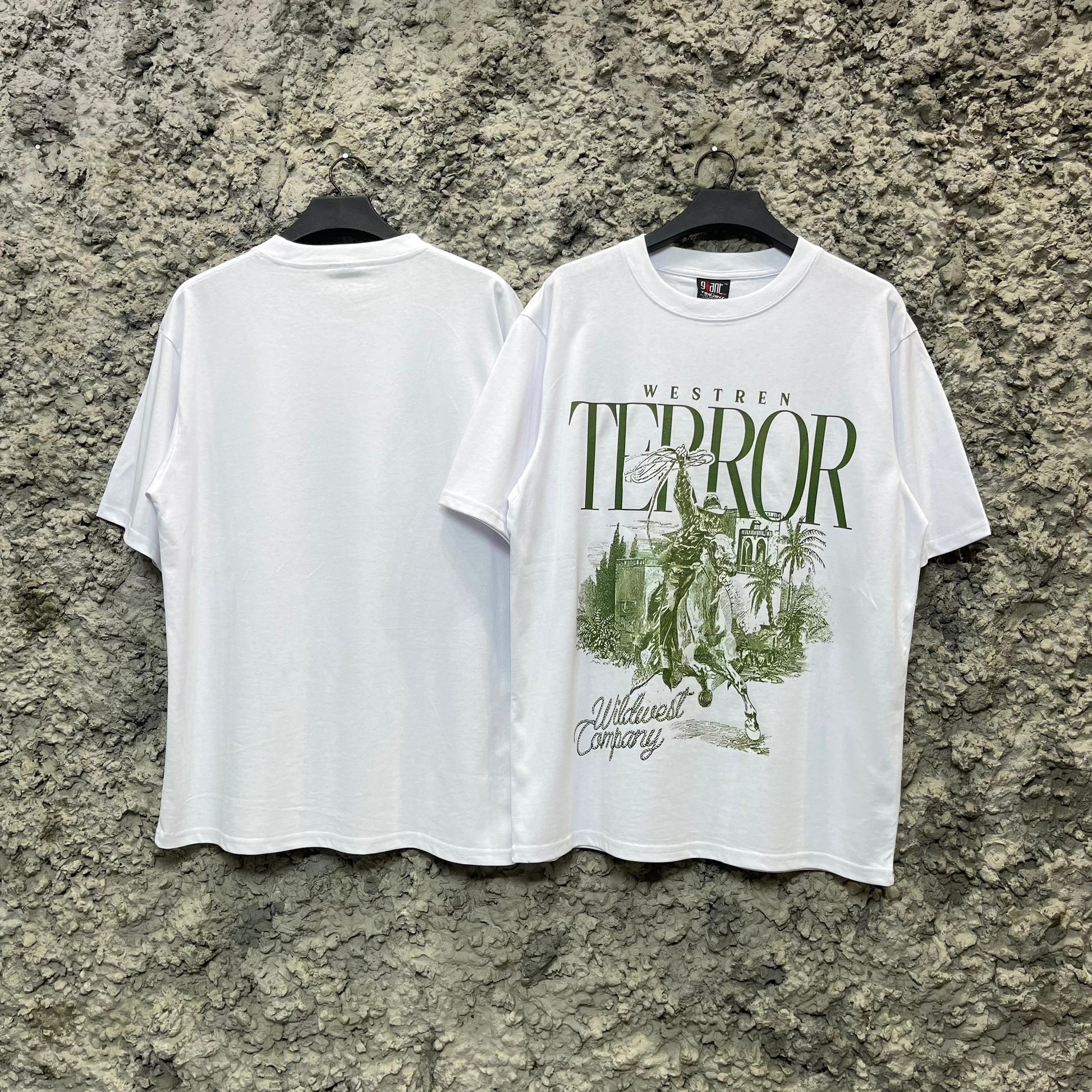 - Front Print: Cowboy graphic with vintage-style font: “Western Terror” & “Wildwest Company”